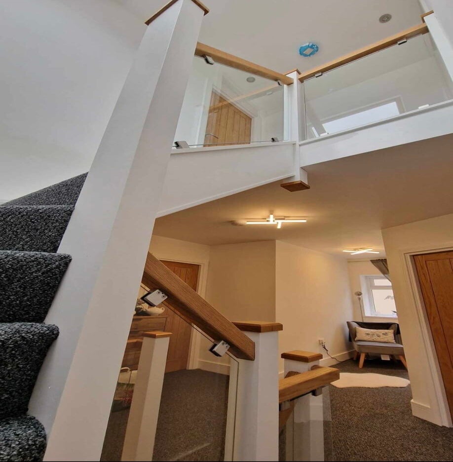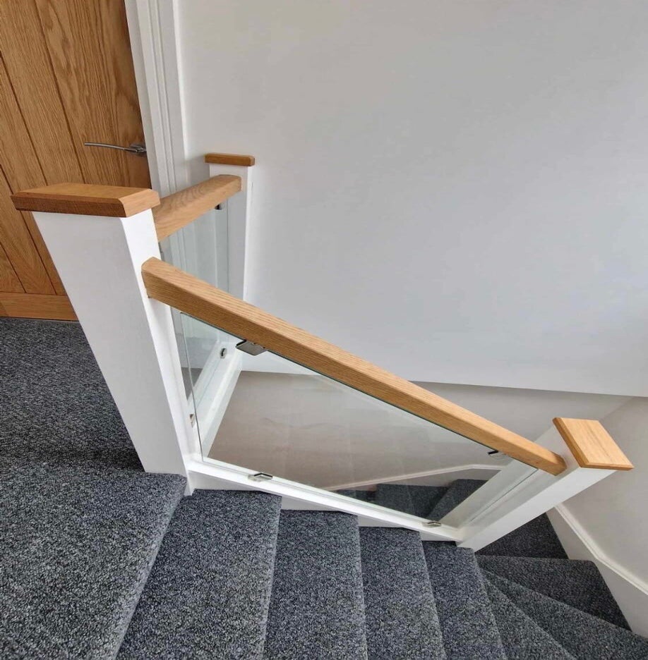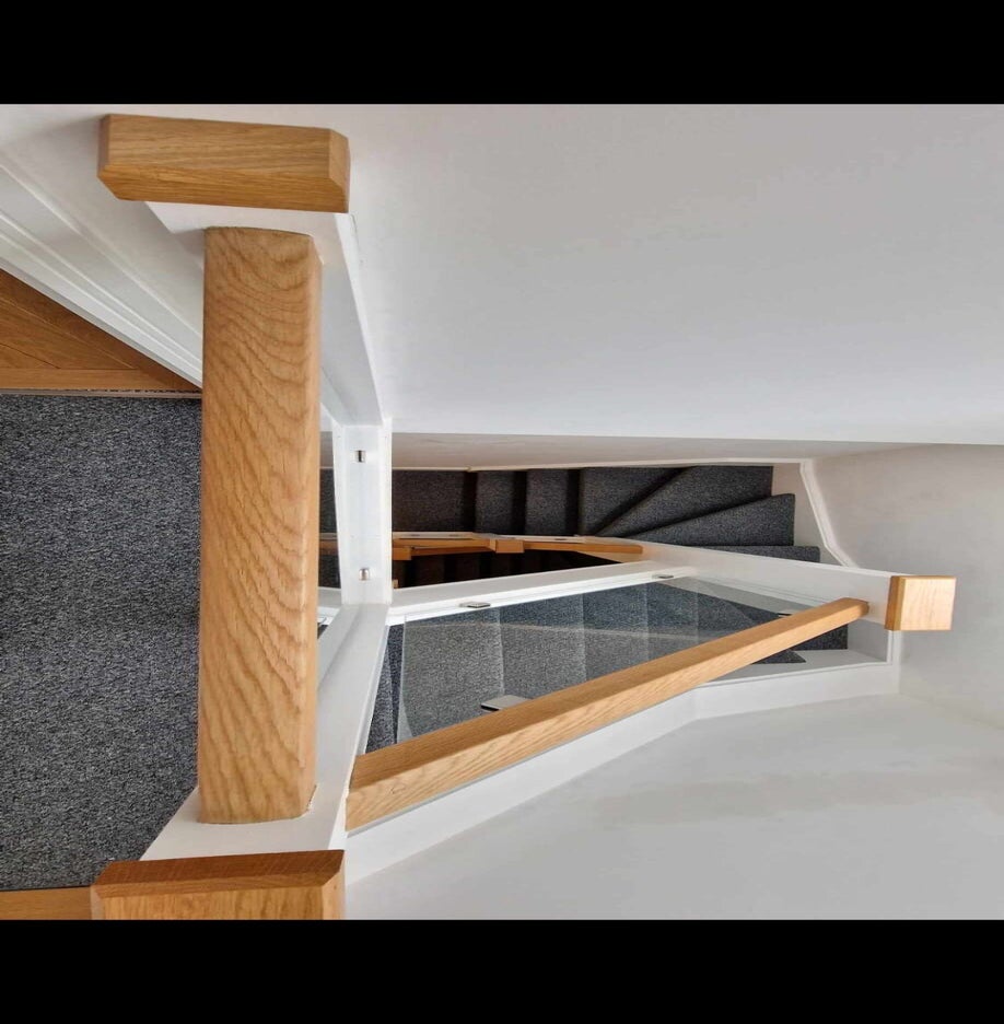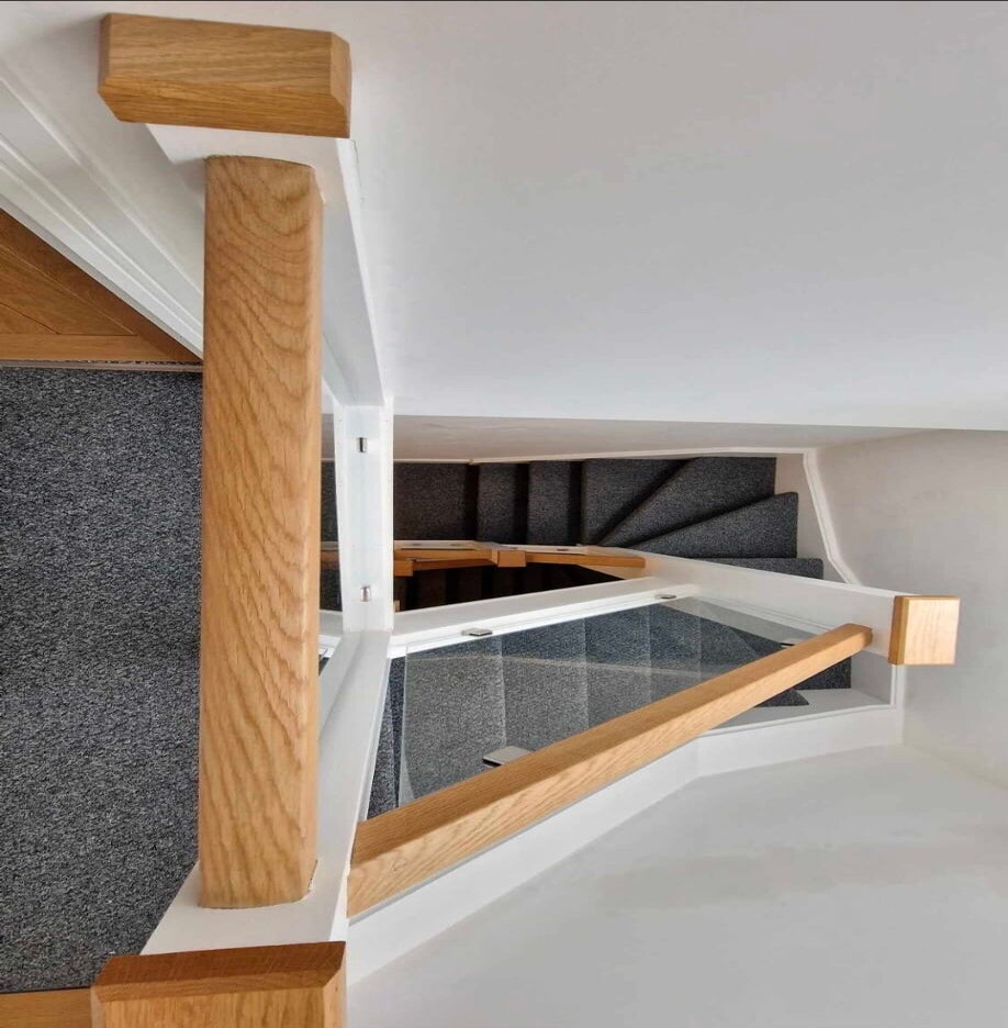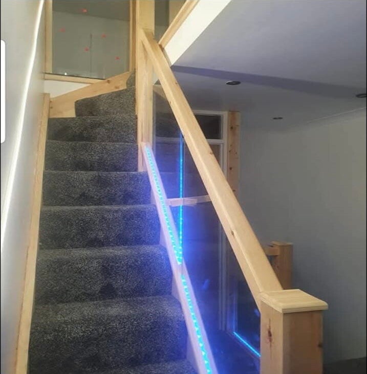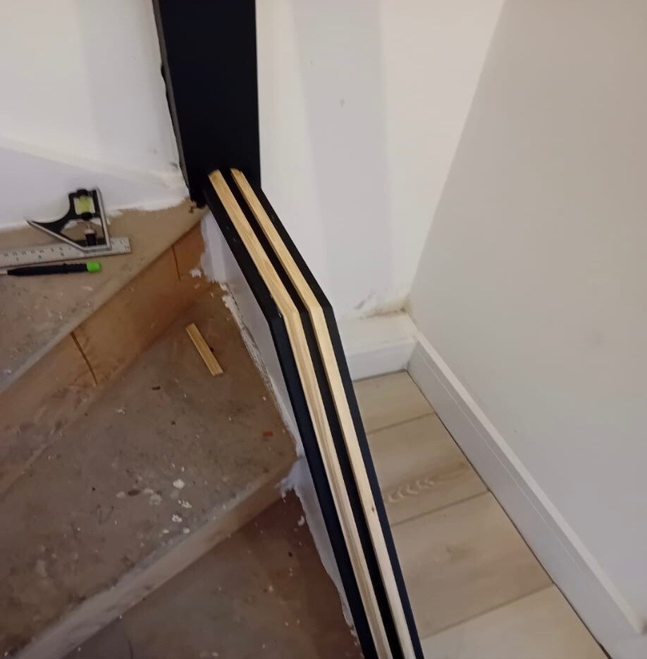 Stair refurb over clad with seamless mitre joint, base rail and Glass