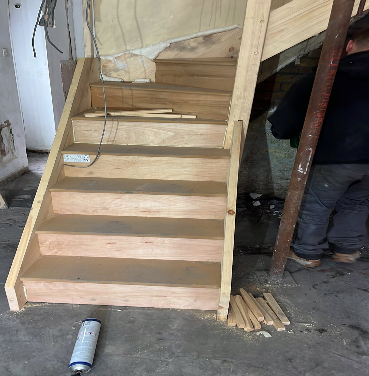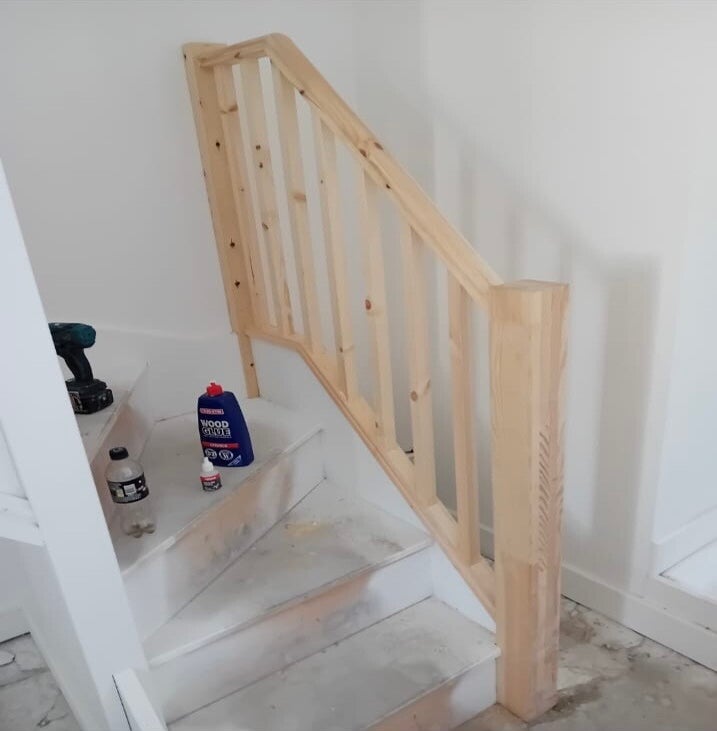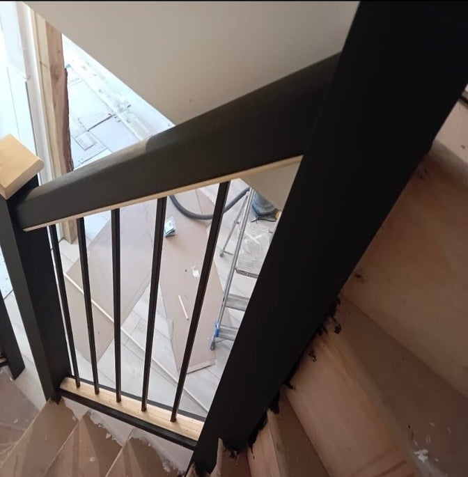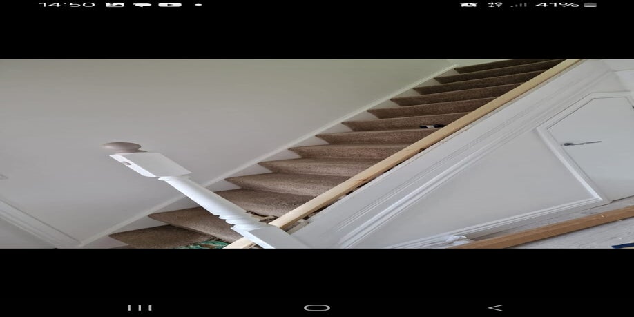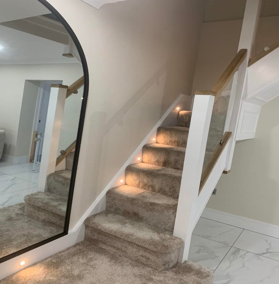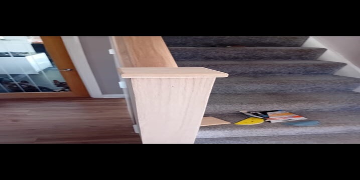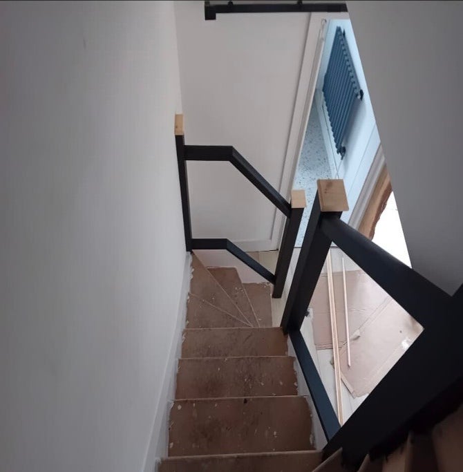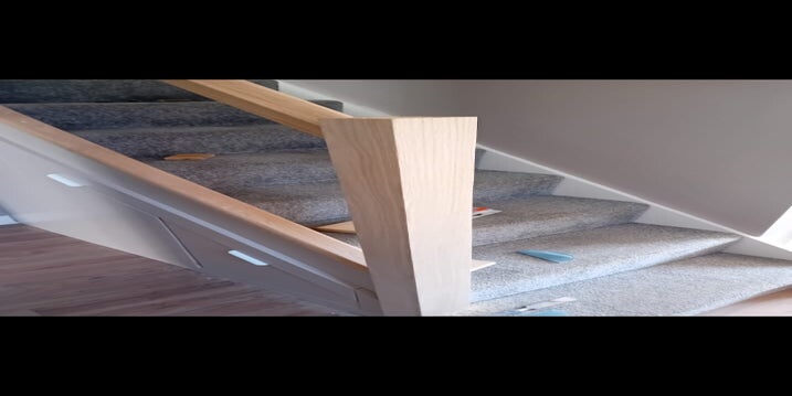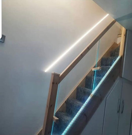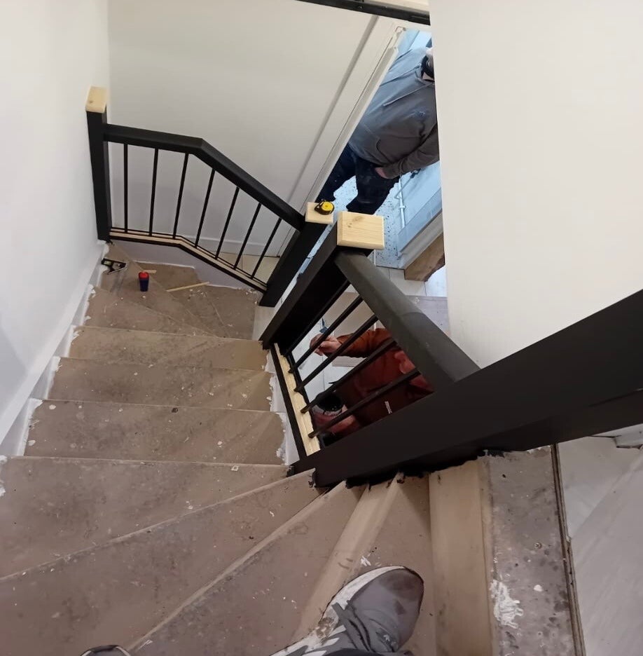 Stair refurb over clad with seamless mitre joint, base rail and Glass