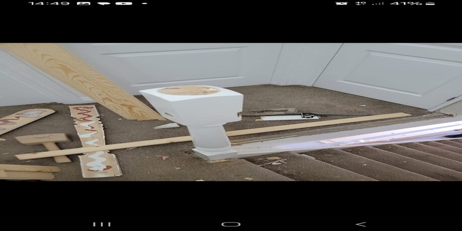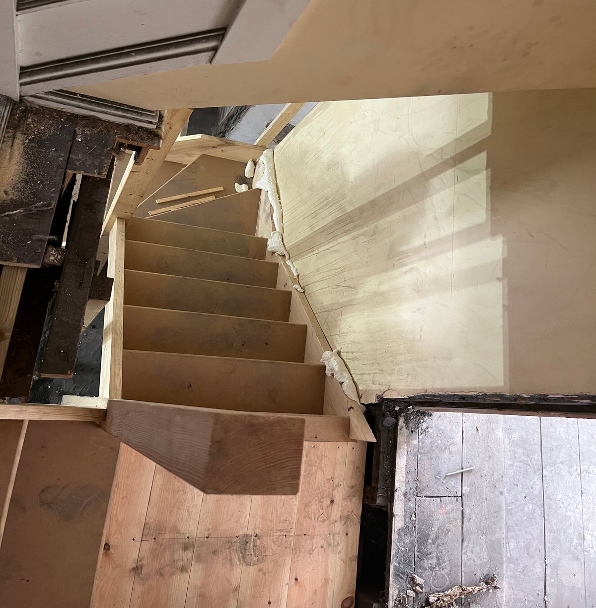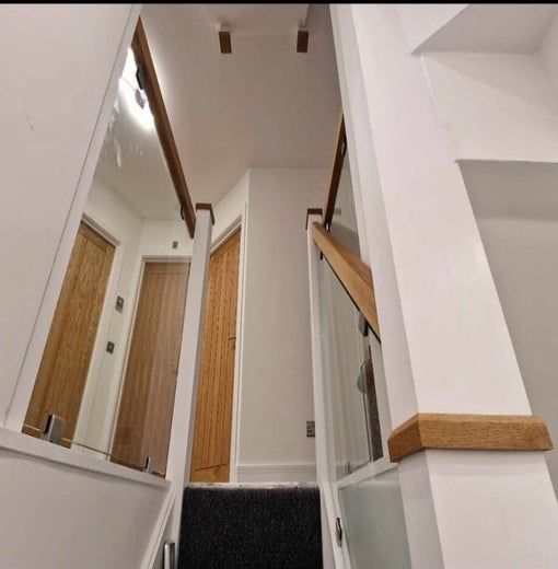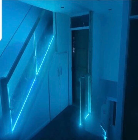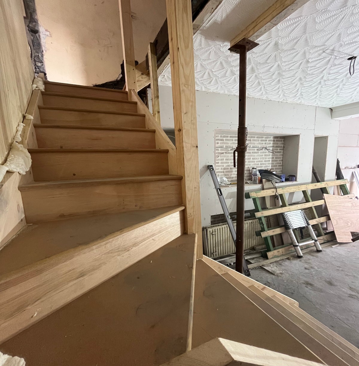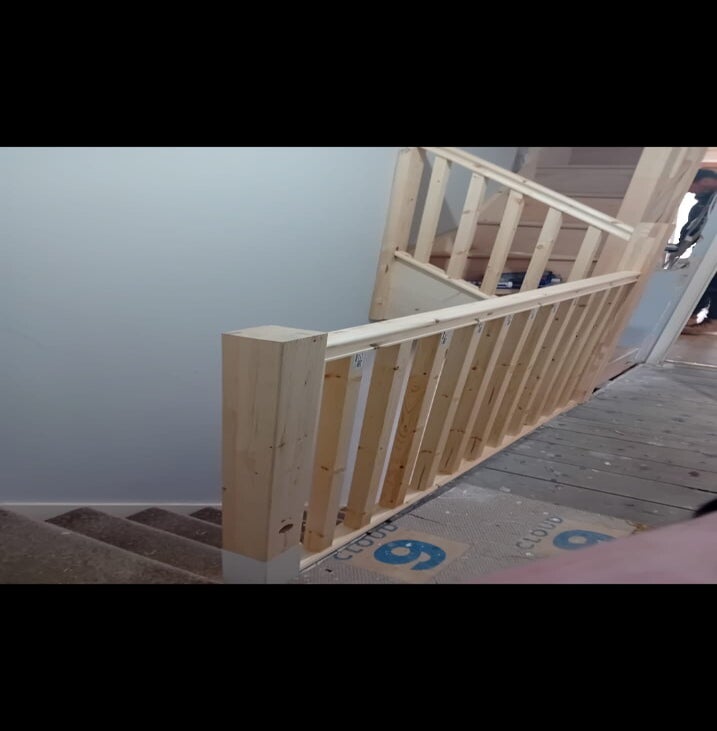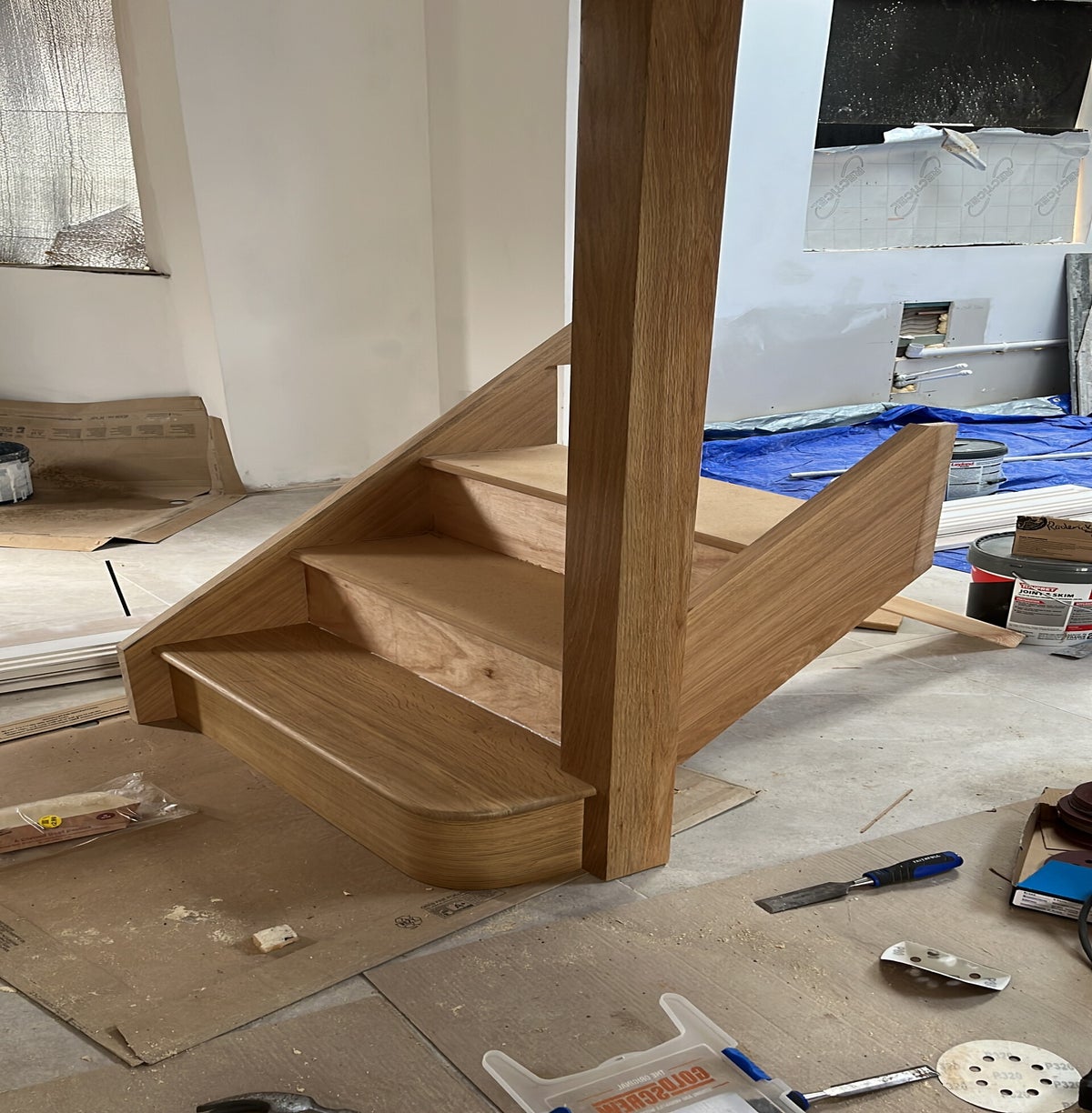 Stair refurb over clad with seamless mitre joint, base rail and Glass