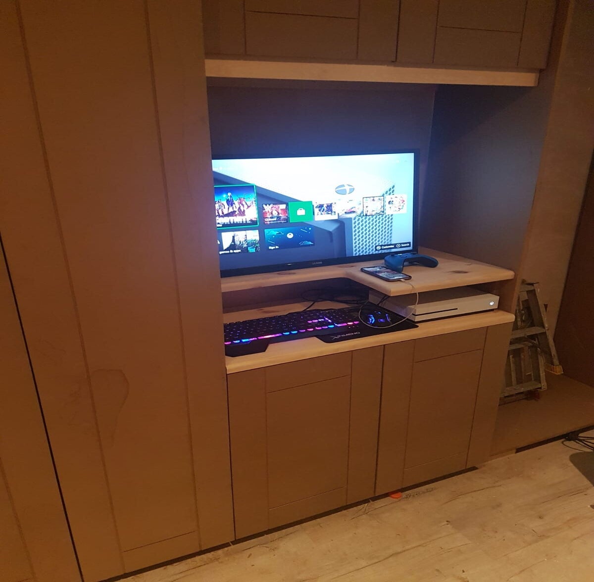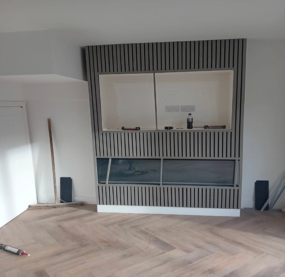 Bespoke Media Walls, Oak Beam Mantle & Alcove with Glass Option